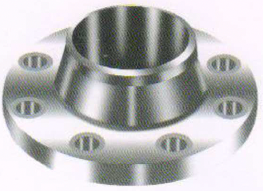 This flange has a long tapered hub, providing strength and smooth stress transfer.