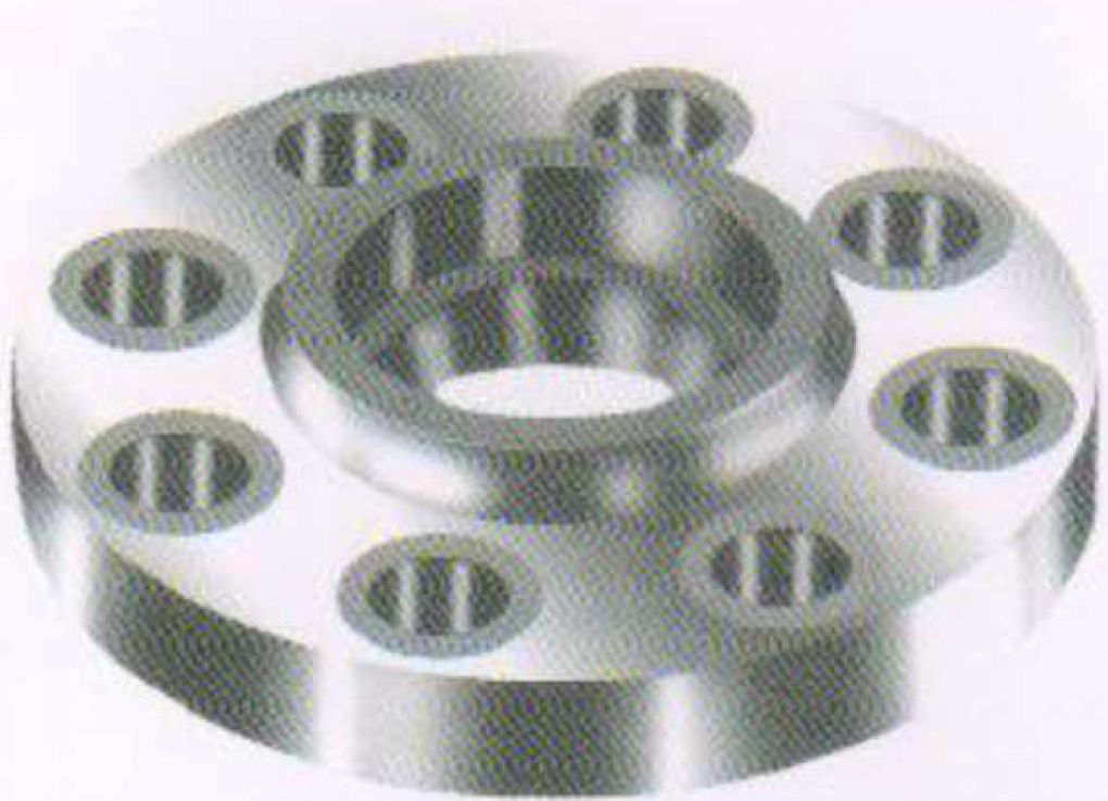 This flange is solid, used to close the end of a pipe or pressure vessel.